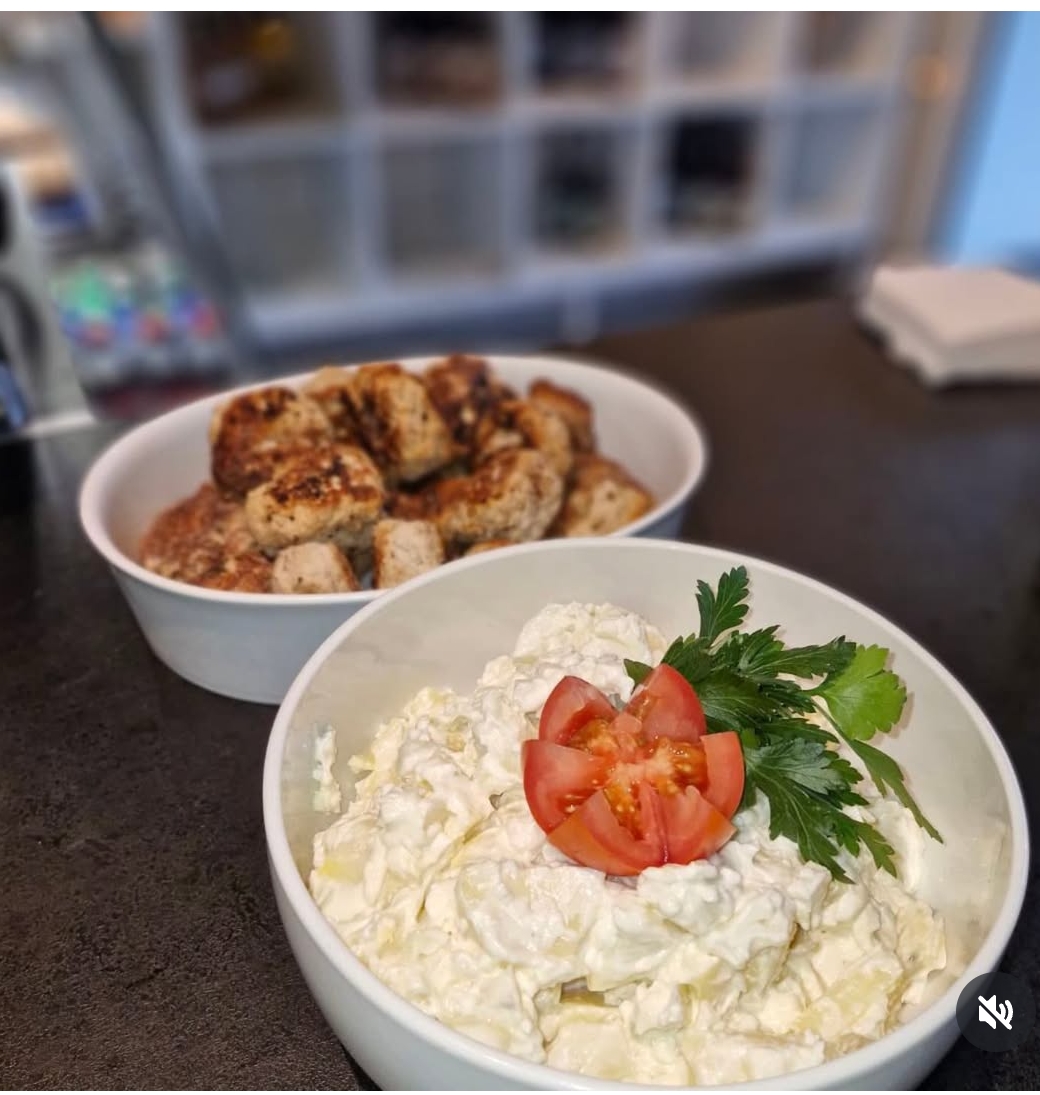 – Jule sliders med frikadeller, rødkål, syltede agurker og dijonmayo.
