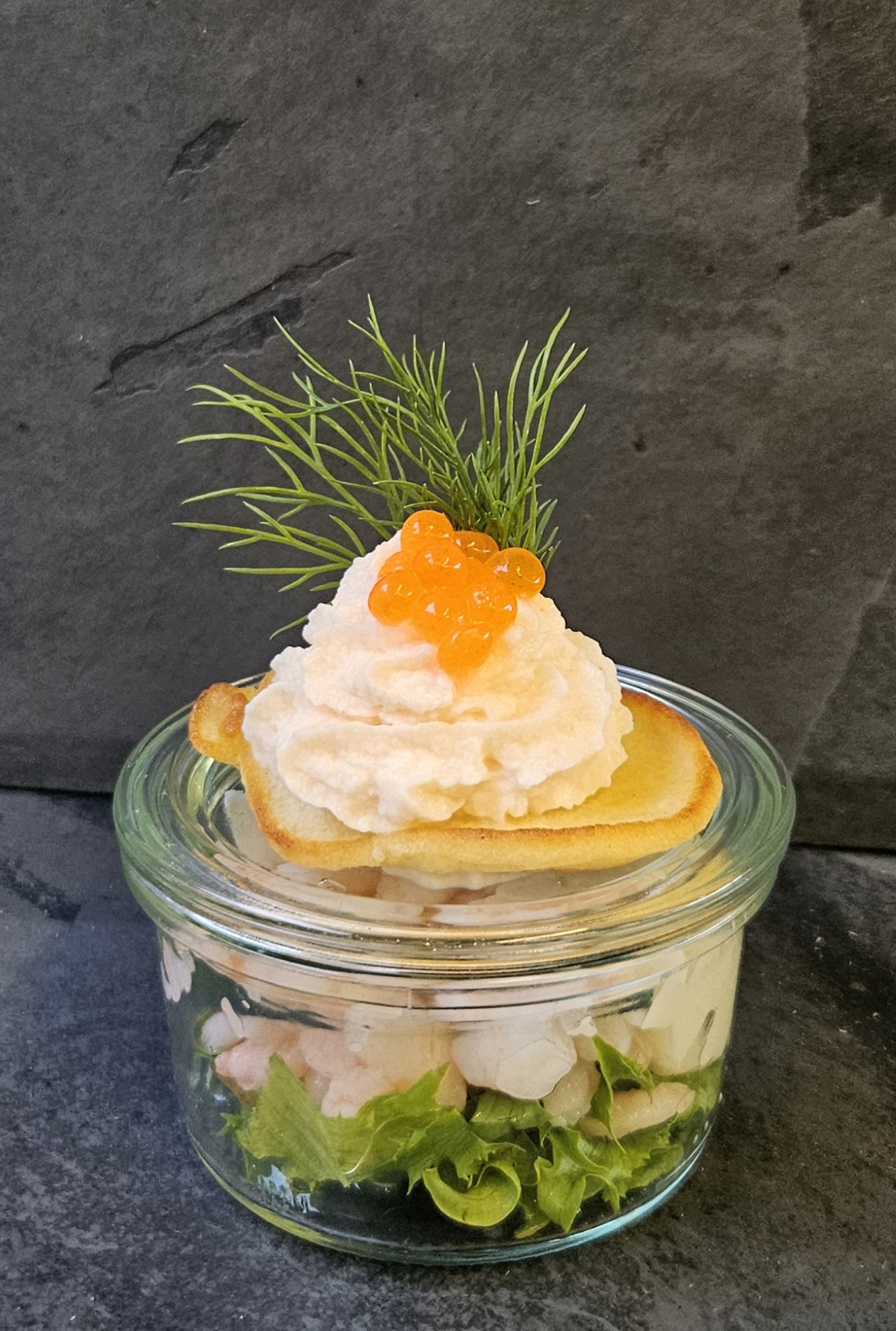 – Profiteroles med rejesalat.