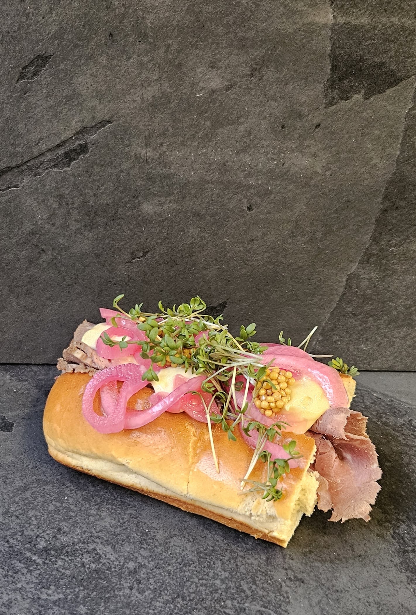 – Rullepølse med sky og løg.