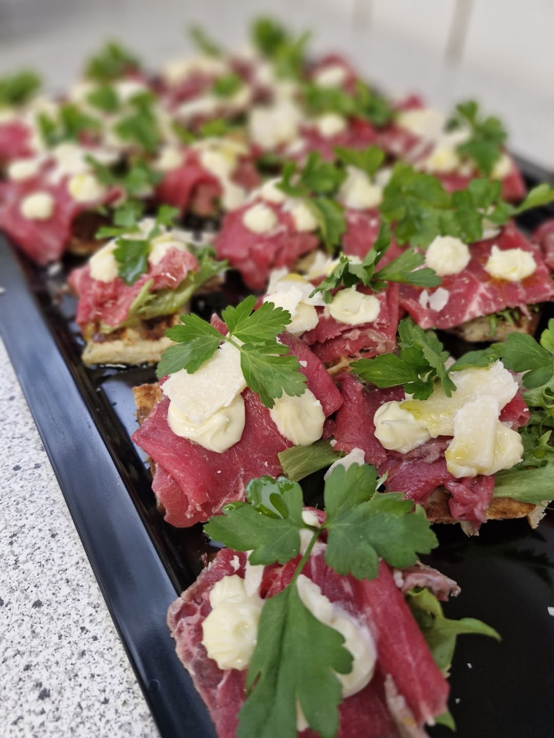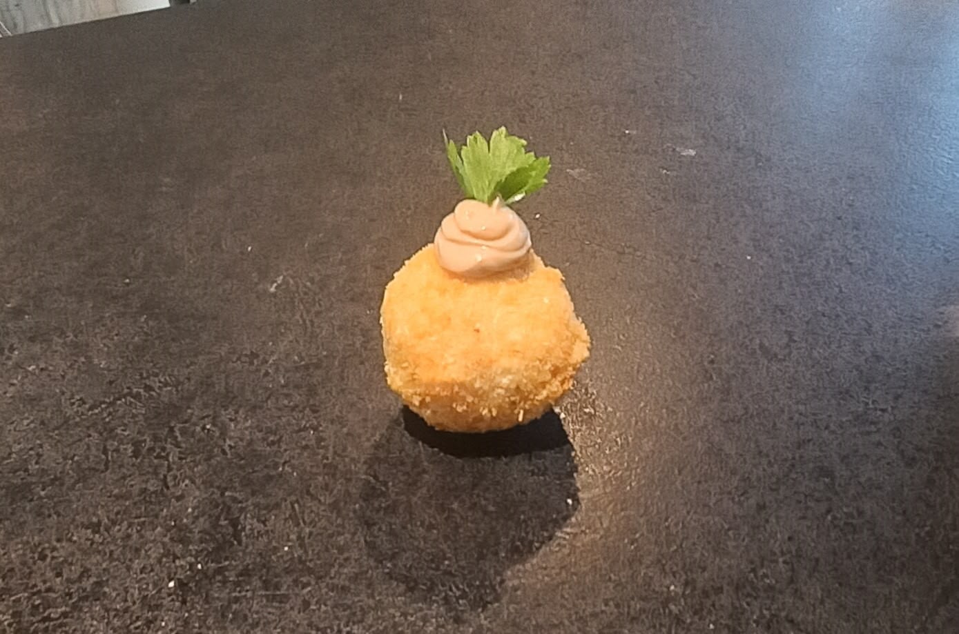 Månedens Tapas:– Laksemousse med sylted rødløg.– Parmesankurv med cæsarsalat.– Risottokugle.– Maltvafler med skinke og svampemayo.– Panko reje med grønmayo.– Cheesecake.
